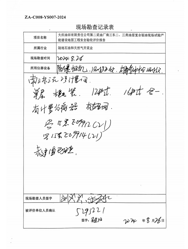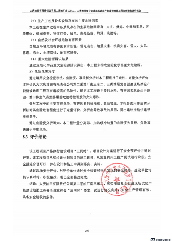 大慶油田有限責(zé)任公司第二采油廠南三東二、三類油層復(fù)合驅(qū)油現(xiàn)場(chǎng)試驗(yàn)產(chǎn)能建設(shè)地面工程安全驗(yàn)收評(píng)價(jià) |