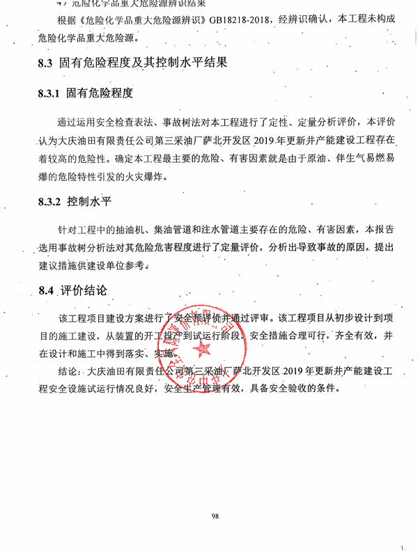 大慶油田有限責(zé)任公司第三采油廠薩北開發(fā)區(qū)2019年更新井產(chǎn)能建設(shè)工程安全驗(yàn)收評(píng)價(jià)報(bào)告 |