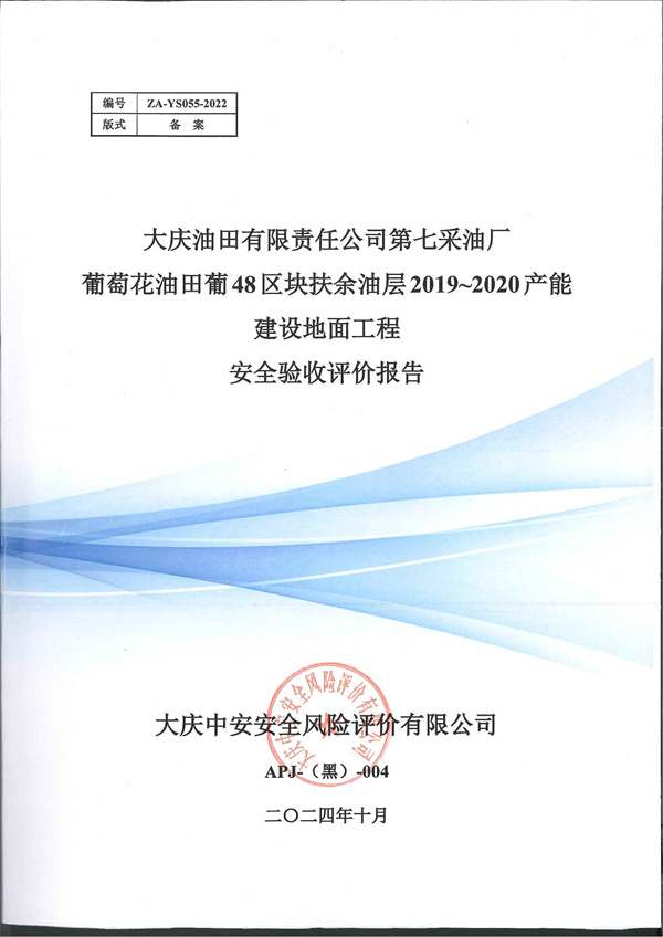 大慶油田有限責(zé)任公司第七采油廠葡萄花油田葡48區(qū)塊扶余油層2019~2020產(chǎn)能建設(shè)地面工程安全驗(yàn)收評(píng)價(jià)報(bào)告