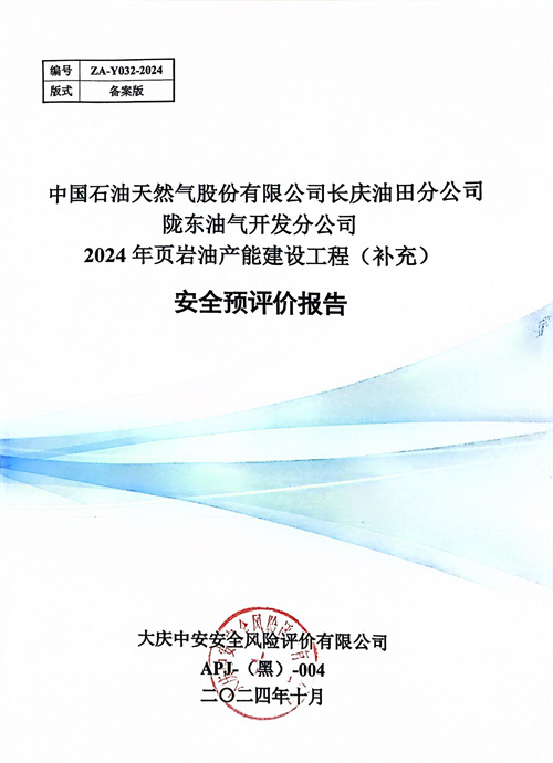 中國(guó)石油天然氣股份有限公司長(zhǎng)慶油田分公司隴東油氣開發(fā)分公司2024年頁(yè)巖油產(chǎn)能建設(shè)工程(補(bǔ)充)安全預(yù)評(píng)價(jià)報(bào)告