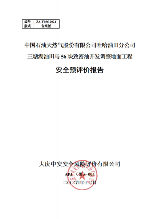 中國(guó)石油天然氣股份有限公司吐哈油田分公司三塘湖油田馬56塊致密油開(kāi)發(fā)調(diào)整地面工程 安全評(píng)價(jià)報(bào)告