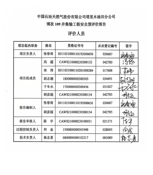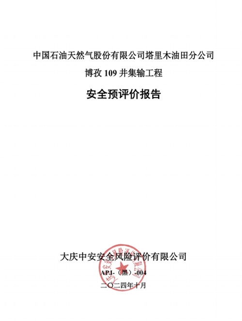 中國石油天然氣股份有限公司塔里木油田分公司博孜109井集輸工程安全預(yù)評價(jià)報(bào)告