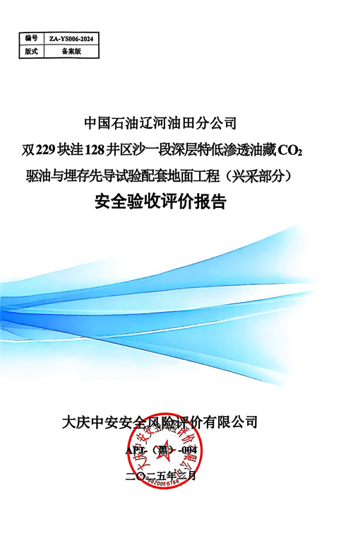 中國石油遼河油田分公司雙229塊洼128井區(qū)沙一段深層特低滲透油藏CO2驅(qū)油與埋存先導(dǎo)試驗(yàn)配套地面工程(興采部分)安全驗(yàn)收評價(jià)報(bào)告