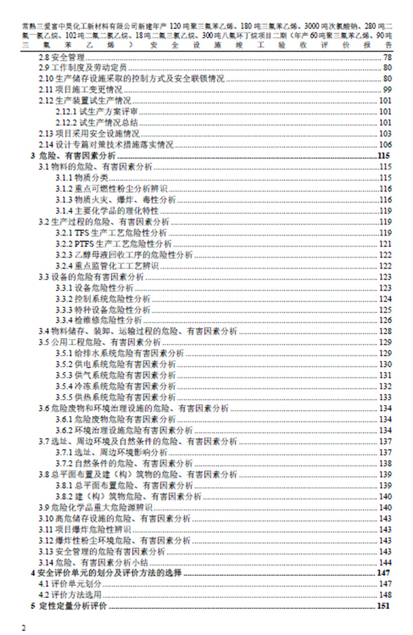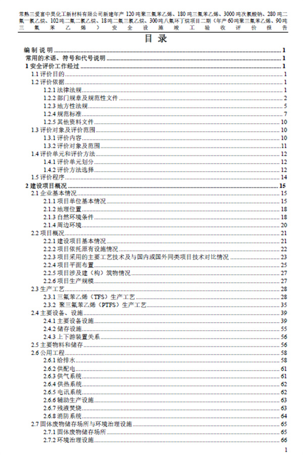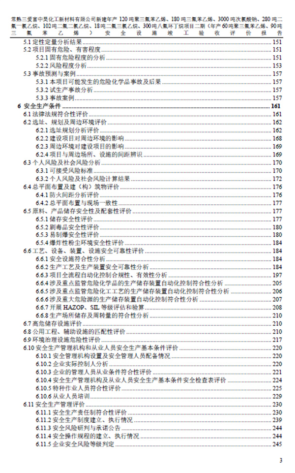 常熟三愛富中昊化工新材料有限公司新建年產(chǎn)120噸聚三氟苯乙烯、180噸三氟苯乙烯、3000噸次氯酸鈉、280噸二氟一氯乙烷、102噸二氟二氯乙烷、18噸二氟三氯乙烷、300噸八氟環(huán)丁烷項(xiàng)目二期(年產(chǎn)60噸聚三氟苯乙烯、90噸三氟苯乙烯)安全設(shè)施竣工驗(yàn)收評價(jià)報(bào)告