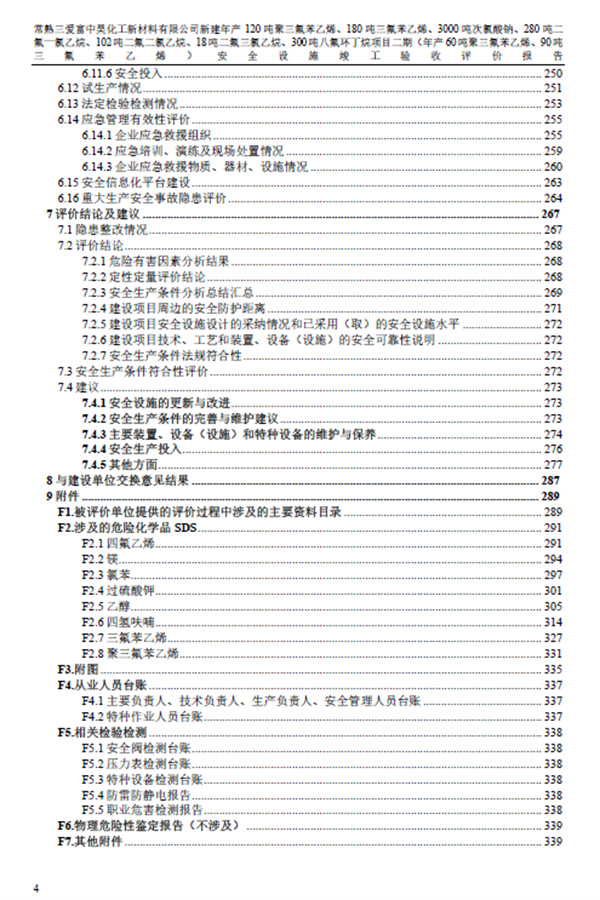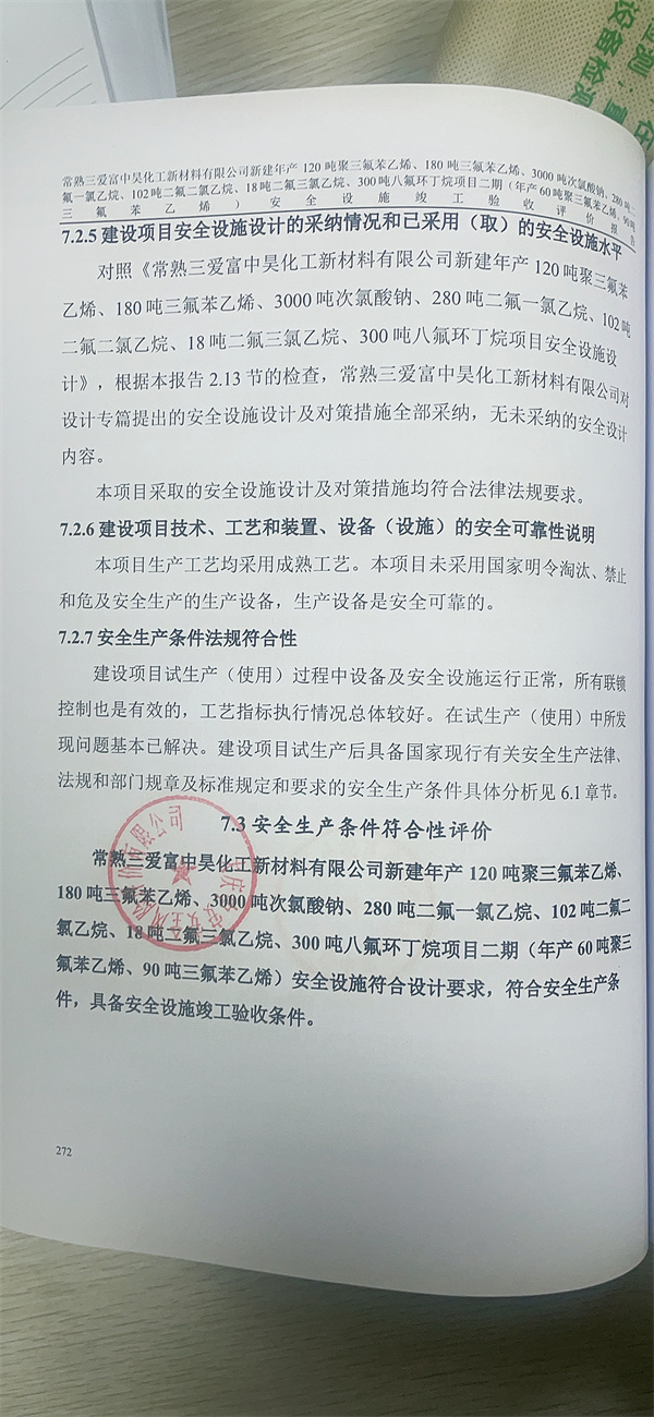 常熟三愛富中昊化工新材料有限公司新建年產(chǎn)120噸聚三氟苯乙烯、180噸三氟苯乙烯、3000噸次氯酸鈉、280噸二氟一氯乙烷、102噸二氟二氯乙烷、18噸二氟三氯乙烷、300噸八氟環(huán)丁烷項(xiàng)目二期(年產(chǎn)60噸聚三氟苯乙烯、90噸三氟苯乙烯)安全設(shè)施竣工驗(yàn)收評價(jià)報(bào)告 |