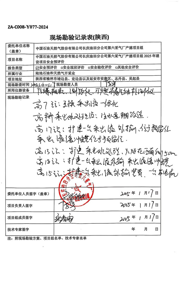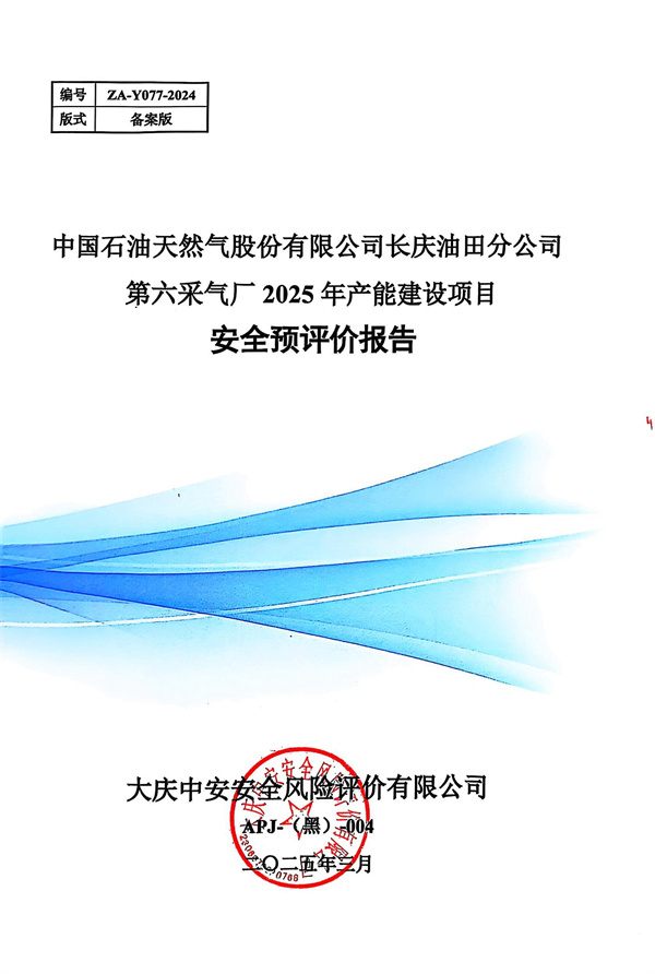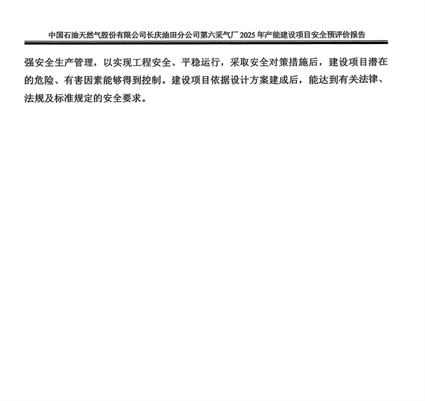 中國石油天然氣股份有限公司長慶油田分公司第六采氣廠2025年產(chǎn)能建設項目安全預評價報告 |