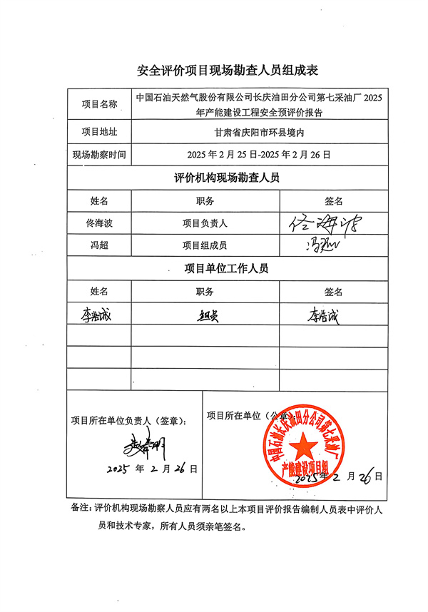 中國石油天然氣股份有限公司長慶油田分公司第七采油廠2025年產(chǎn)能建設(shè)工程安全預(yù)評價(jià)報(bào)告 |