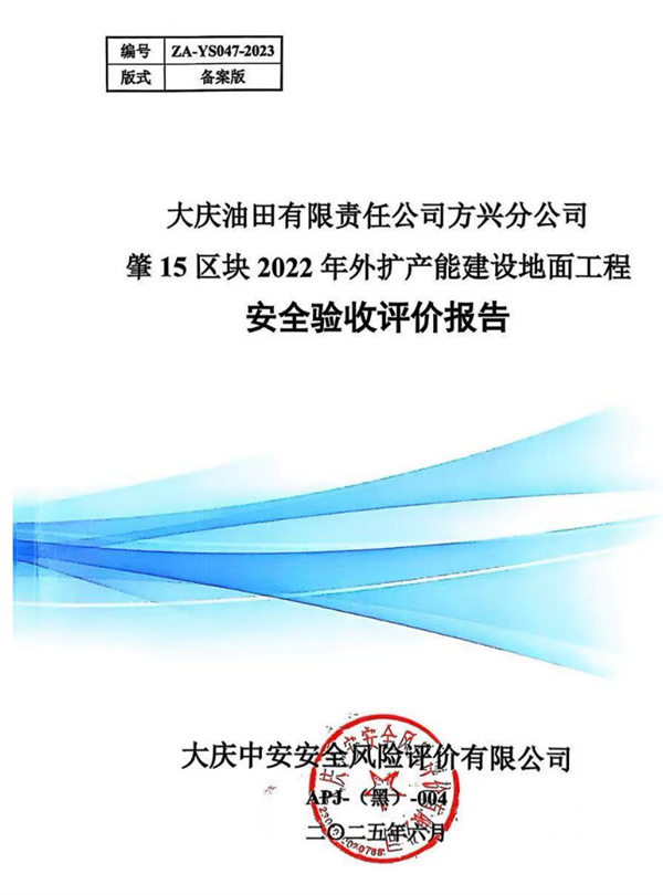 大慶油田有限責(zé)任公司方興分公司肇15區(qū)塊2022年外擴(kuò)產(chǎn)能建設(shè)地面工程安全驗(yàn)收評(píng)價(jià)