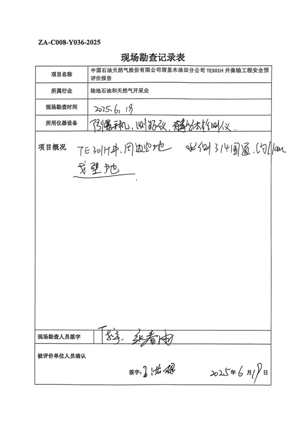 中國石油天然氣股份有限公司塔里木油田分公司TE301H井集輸工程安全預評價報告