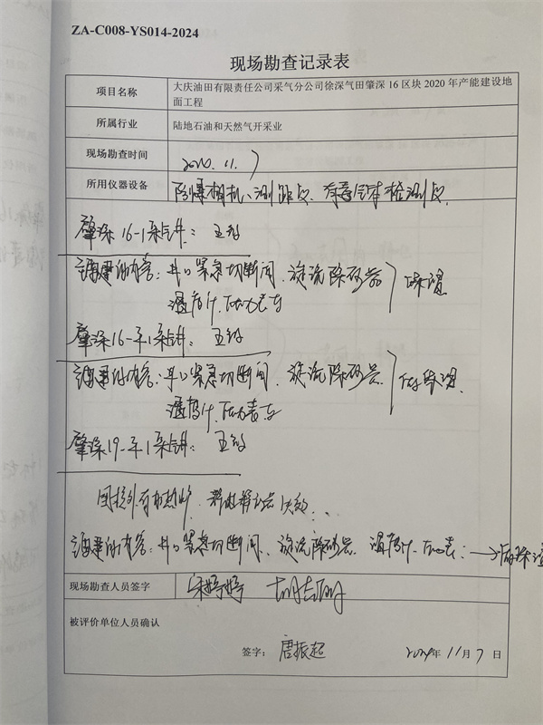 大慶油田有限責任公司采氣分公司徐深氣田肇深16區(qū)塊2020年產(chǎn)能建設(shè)地面工程安全驗收 |