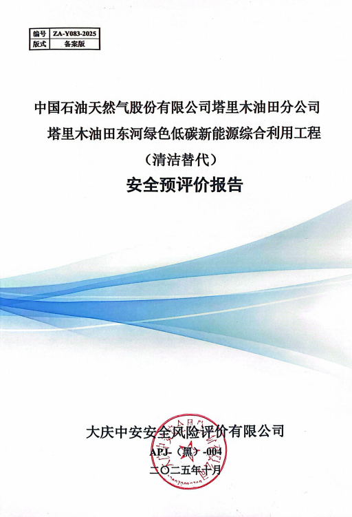 中國石油天然氣股份有限公司塔里木油田分公司塔里木油田東河綠色低碳新能源綜合利用工程(清潔替代)安全預(yù)評價報告