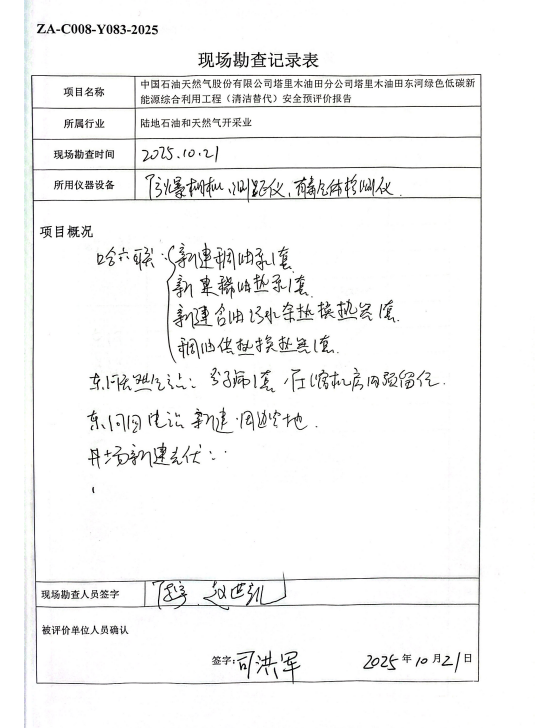 中國石油天然氣股份有限公司塔里木油田分公司塔里木油田東河綠色低碳新能源綜合利用工程(清潔替代)安全預(yù)評價報告 |