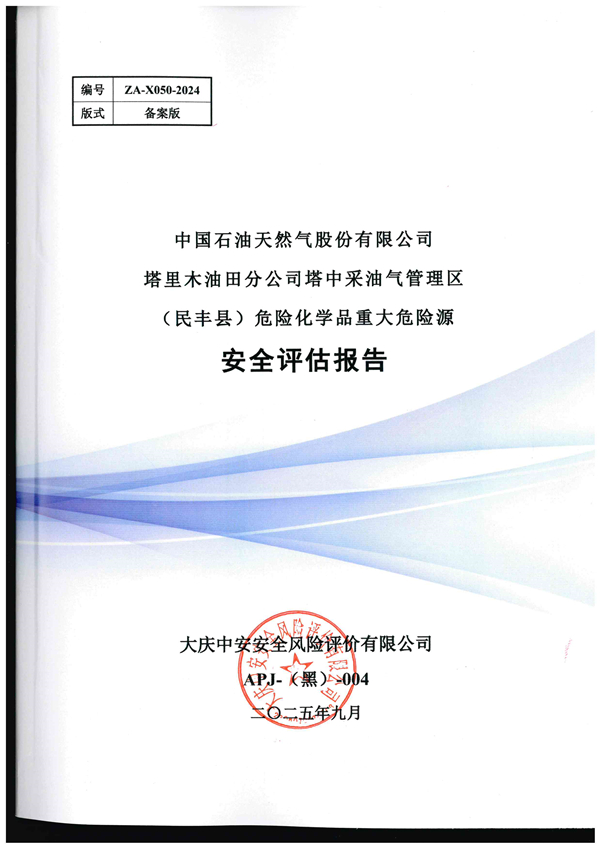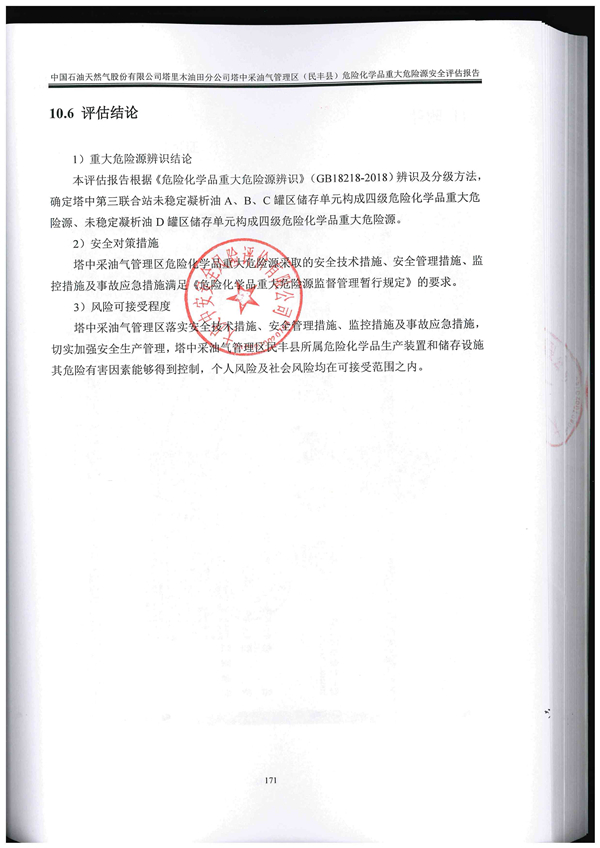 中國石油天然氣股份有限公司塔里木油田分公司塔中采油氣管理區(qū)危險化學品重大危險源評估報告 |
