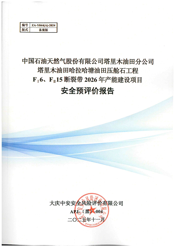 中國(guó)石油天然氣股份有限公司塔里木油田分公司塔里木油田哈拉哈塘油田壓艙石工程FⅠ6、FⅡ15斷裂帶2026年產(chǎn)能建設(shè)項(xiàng)目安全預(yù)評(píng)價(jià)報(bào)告 |