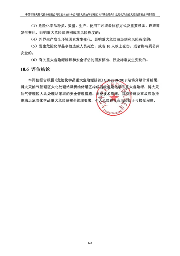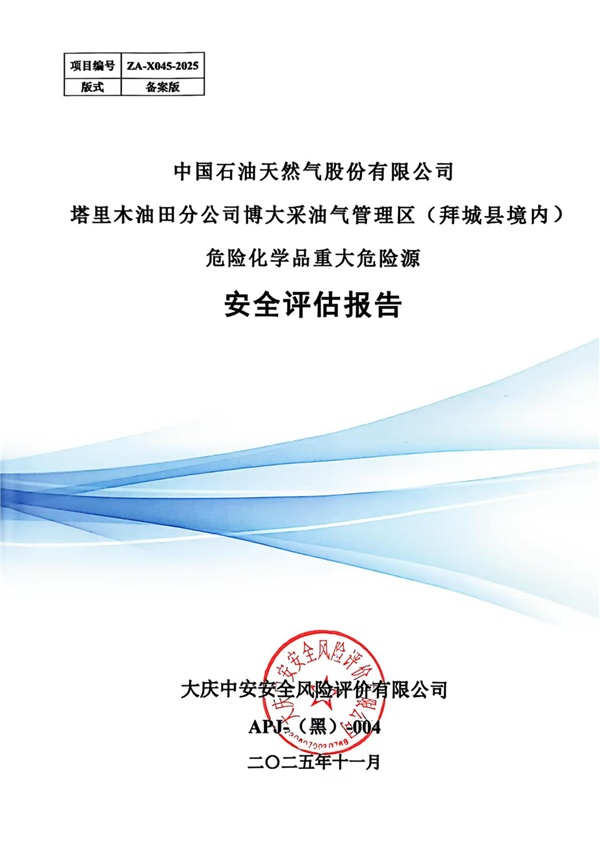 中國石油天然氣股份有限公司塔里木油田分公司博大采油氣管理區(qū)危險化學品重大危險源評估報告