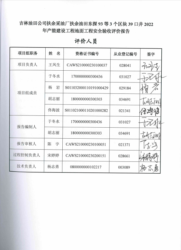 吉林油田公司扶余采油廠扶余油田東探93等3個區(qū)塊39口井2022年產(chǎn)能建設(shè)工程地面工程安全驗收評價報告 |