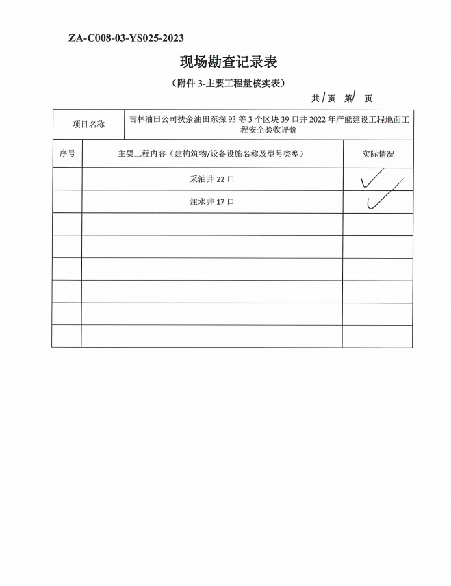 對吉林油田公司扶余采油廠扶余油田東探93等3個區(qū)塊39口井2022年產(chǎn)能建設(shè)工程地面工程項目運行管理和監(jiān)督制度齊全,經(jīng)現(xiàn)場勘察,安全設(shè)施設(shè)置情況良好,經(jīng)過符合性檢查,符合法律、法規(guī)和標(biāo)準(zhǔn)規(guī)范的要求,具備安全驗收條件。 |