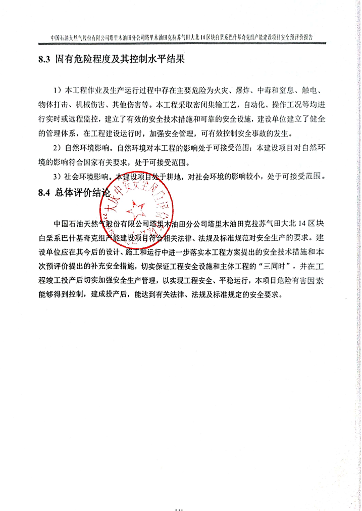 中國(guó)石油天然氣股份有限公司塔里木油田分公司塔里木油田克拉蘇氣田大北14區(qū)塊白堊系巴什基奇克產(chǎn)能建設(shè)項(xiàng)目安全預(yù)評(píng)價(jià)報(bào)告 |