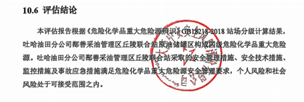 中國石油天然氣股份有限公司吐哈油田分公司鄯善采油管理區(qū)丘陵聯(lián)合站原油儲罐區(qū)構(gòu)成四級危險化學(xué)品重大危險源。 |
