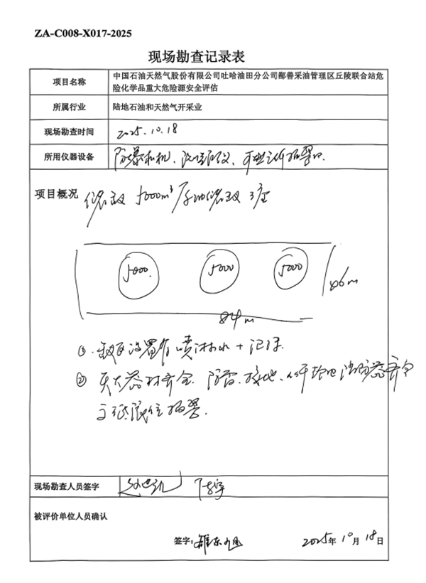核實丘陵聯(lián)合站所在區(qū)域位置、平面布置的符合性,勘察原油儲罐區(qū)儲罐容量、防火堤及與重大危險源相關(guān)的安全管理措施、安全技術(shù)措施和安全監(jiān)控設(shè)施。 |