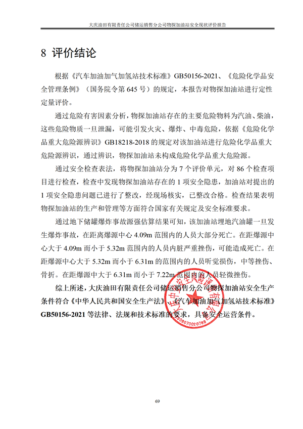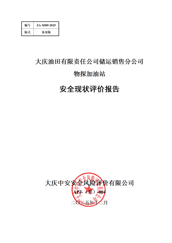 大慶油田有限責任公司儲運銷售分公司物探加油站安全現(xiàn)狀評價報告