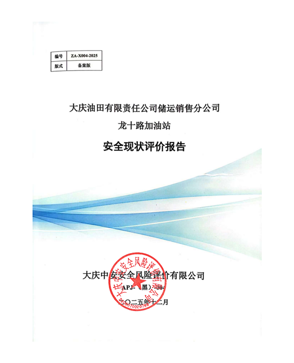 大慶油田有限責(zé)任公司儲(chǔ)運(yùn)銷售分公司龍十路加油站安全現(xiàn)狀評(píng)價(jià)報(bào)告