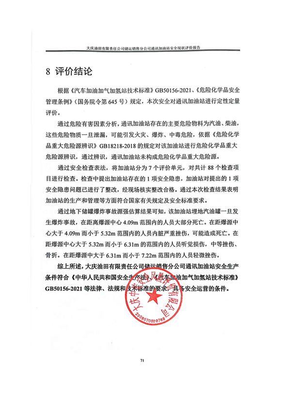 大慶油田有限責(zé)任公司儲運(yùn)銷售分公司通訊加油站安全現(xiàn)狀評價報告