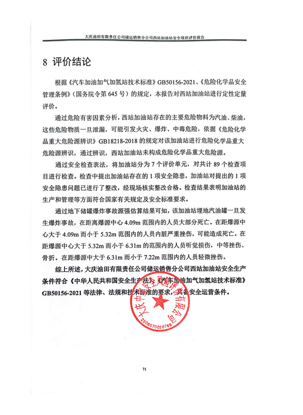 大慶油田有限責(zé)任公司儲(chǔ)運(yùn)銷(xiāo)售分公司西站加油站安全現(xiàn)狀評(píng)價(jià)報(bào)告 |