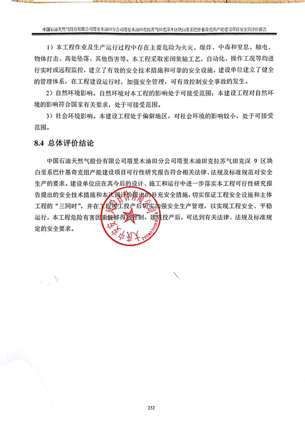 中國石油天然氣股份有限公司塔里木油田分公司塔里木油田克拉蘇氣田克深9區(qū)塊白堊系巴什基奇克組產(chǎn)能建設(shè)項(xiàng)目可行性研究報(bào)告符合相關(guān)法律、法規(guī)及標(biāo)準(zhǔn)規(guī)范對安全生產(chǎn)的要求。建設(shè)單位應(yīng)在其今后的設(shè)計(jì)、施工和運(yùn)行中進(jìn)一步落實(shí)本工程可行性研究報(bào)告提出的安全技術(shù)措施和本次預(yù)評價(jià)提出的補(bǔ)充安全措施,切實(shí)保證工程安全設(shè)施和主體工程的“三同時(shí)”,并在工程竣工投產(chǎn)后切實(shí)加強(qiáng)安全生產(chǎn)管理,以實(shí)現(xiàn)工程安全、平穩(wěn)運(yùn)行,本工程危險(xiǎn)有害因素能夠得到控制,建成投產(chǎn)后,可達(dá)到有關(guān)法律、法規(guī)及標(biāo)準(zhǔn)規(guī)定的安全要求。 |