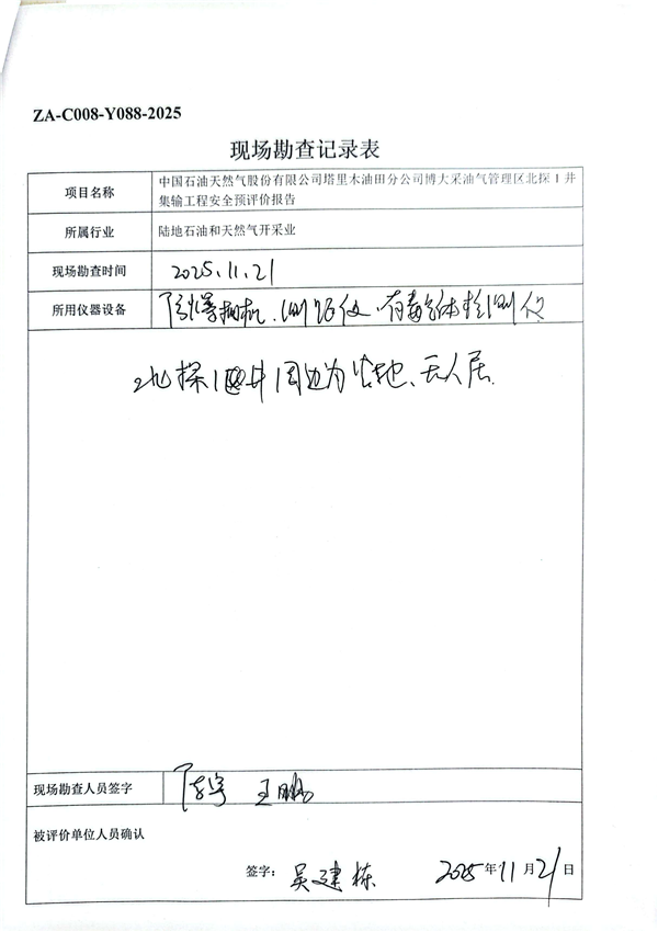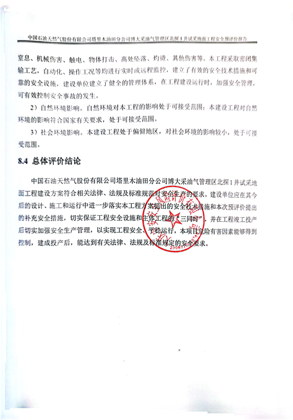 中國石油天然氣股份有限公司塔里木油田分公司博大采油氣管理區(qū)北探1井試采地面工程安全預(yù)評價報告 |