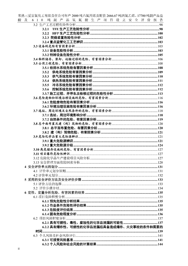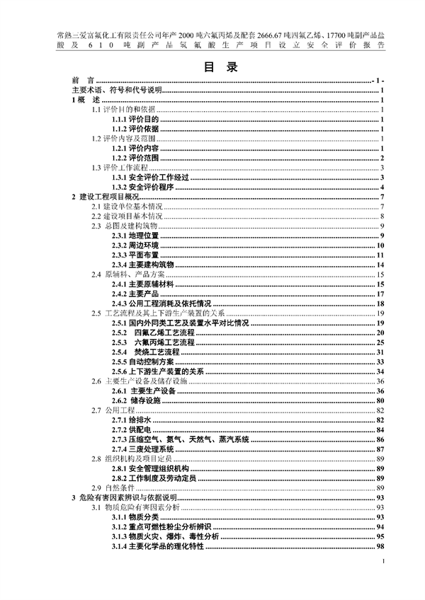 常熟三愛富氟化工有限責(zé)任公司年產(chǎn)2000噸六氟丙烯及 配套2666.67噸四氟乙烯、17700噸副產(chǎn)品鹽酸及610噸副產(chǎn)品氫氟酸生產(chǎn)項(xiàng)目設(shè)立安全評價(jià)報(bào)告