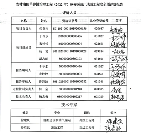 吉林油田單井罐治理工程(2022年)乾安采油廠地面工程安全評(píng)價(jià)報(bào)告