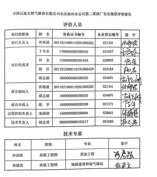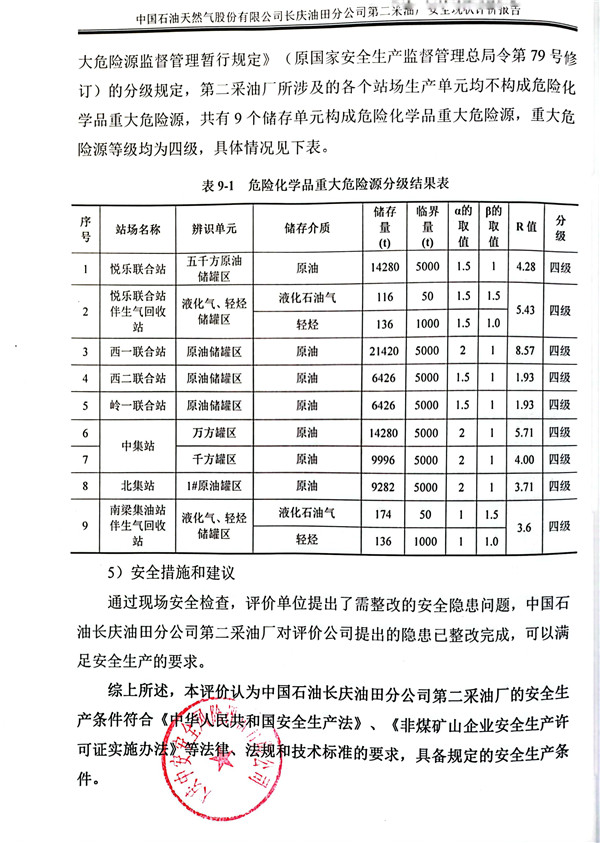 中國石油天然氣股份有限公司長慶油田分公司第二采油廠安全現(xiàn)狀評(píng)價(jià)