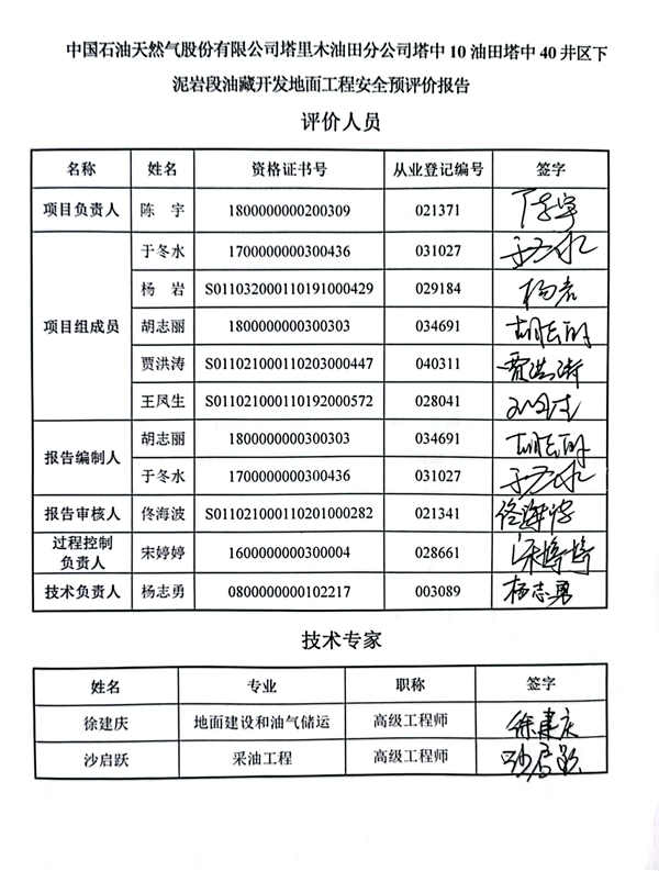 中國(guó)石油天然氣股份有限公司塔里木油田分公司塔中10油田塔中40井區(qū)下泥巖段油藏開發(fā)地面工程安全預(yù)評(píng)價(jià)報(bào)告