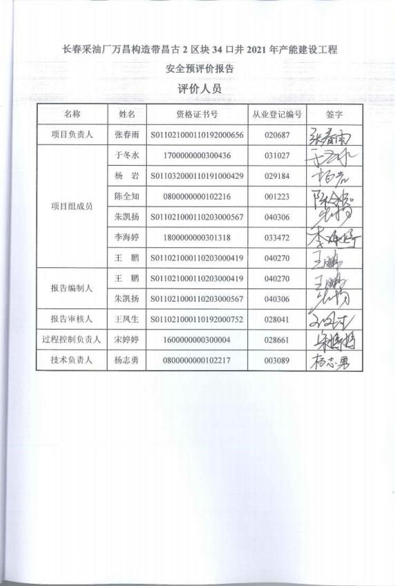 長(zhǎng)春采油廠萬(wàn)昌構(gòu)造帶昌古2區(qū)塊34口井2021年產(chǎn)能建設(shè)工程安全評(píng)價(jià)報(bào)告