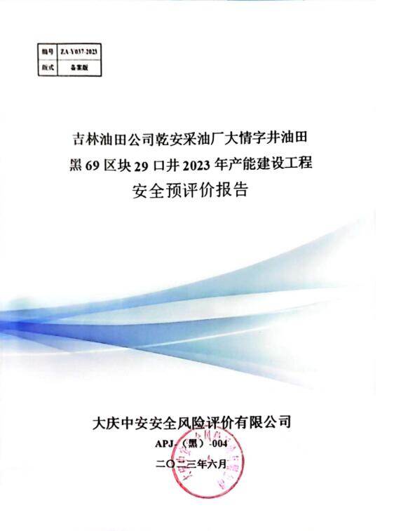 吉林油田公司乾安采油廠大情字井油田黑69區(qū)塊29口井2023年產(chǎn)能建設(shè)工程安全評(píng)價(jià)報(bào)告