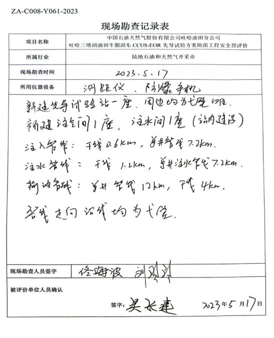 中國石油天然氣股份有限公司吐哈油田分公司吐哈三塘湖油田牛圈湖東區(qū)CCUS-EOR先導(dǎo)試驗(yàn)方案地面工程安全預(yù)評(píng)價(jià) |