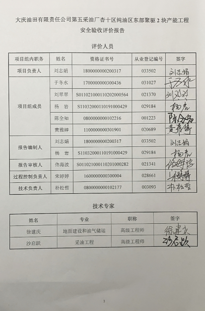 大慶油田有限責(zé)任公司第五采油廠杏十區(qū)純油區(qū)東部聚驅(qū)2塊產(chǎn)能工程安全驗收評價報告