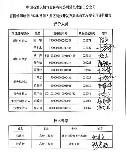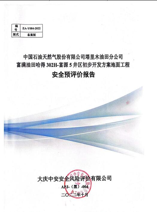 中國(guó)石油天然氣股份有限公司塔里木油田分公司富滿油田哈得302H-富源5井區(qū)初步開發(fā)方案地面工程安全評(píng)價(jià)報(bào)告