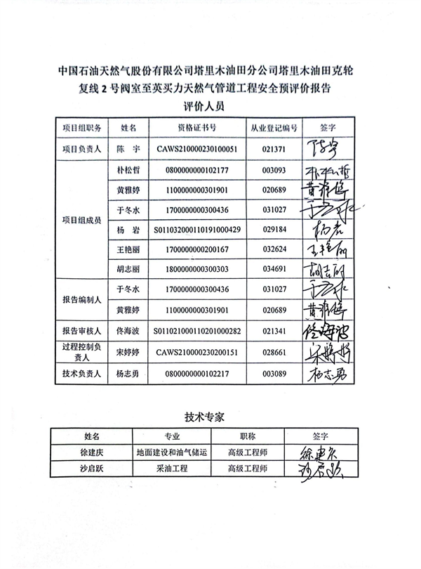 中國(guó)石油天然氣股份有限公司塔里木油田分公司 塔里木油田克輪復(fù)線2號(hào)閥室至英買(mǎi)力天然氣管道工程安全預(yù)評(píng)價(jià)報(bào)告