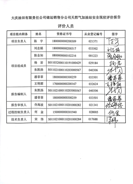 大慶油田有限責(zé)任公司儲(chǔ)運(yùn)銷售分公司天然氣加油站安全現(xiàn)狀評(píng)價(jià)報(bào)告 |