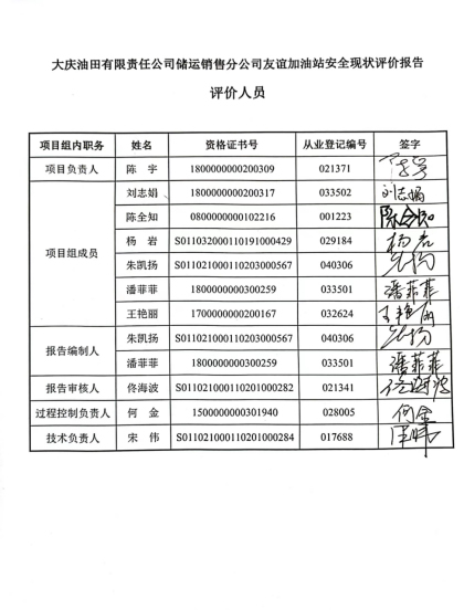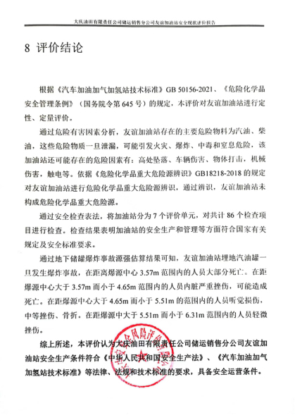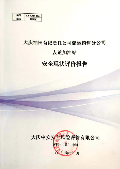 大慶油田有限責(zé)任公司儲運銷售分公司友誼加油站安全現(xiàn)狀評價報告