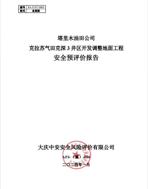 塔里木油田公司克拉蘇氣田克深3井區(qū)開發(fā)調(diào)整地面工程安全預(yù)評(píng)價(jià)報(bào)告
