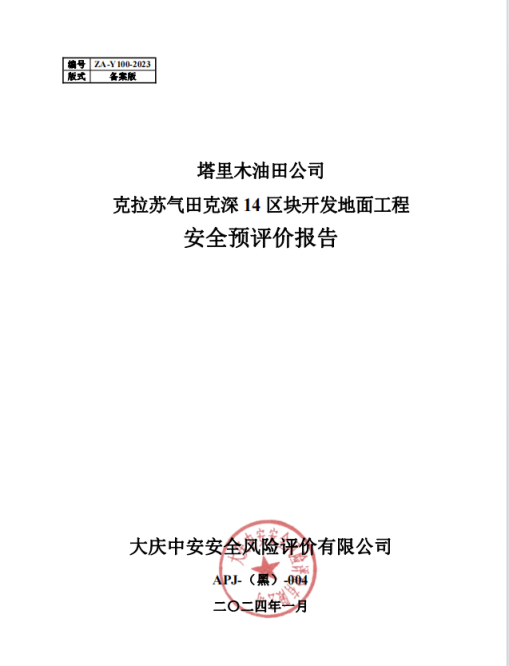 塔里木油田公司克拉蘇氣田克深14區(qū)塊開發(fā)地面工程安全預(yù)評(píng)價(jià)報(bào)告