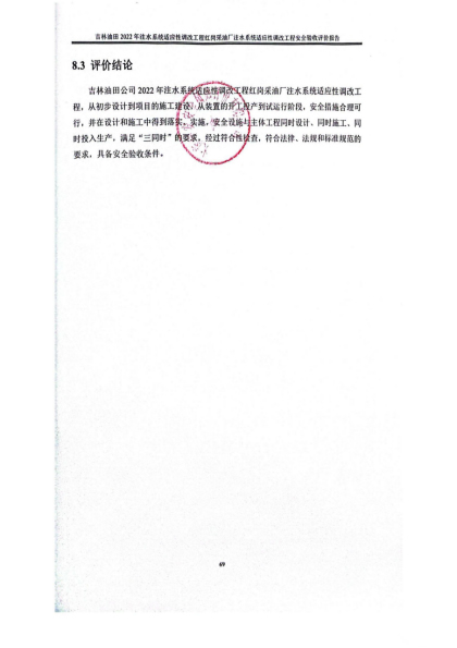 吉林油田2022年注水系統(tǒng)適應(yīng)性調(diào)改工程紅崗采油廠注水系統(tǒng)適應(yīng)性調(diào)改工程安全驗(yàn)收評價報告 |