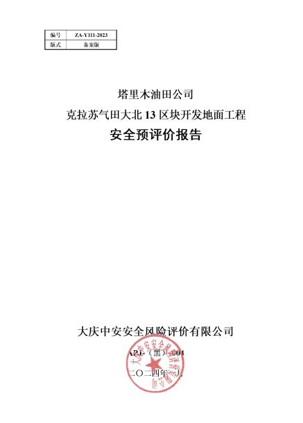 塔里木油田公司克拉蘇氣田大北13區(qū)塊開發(fā)地面工程安全預評價報告