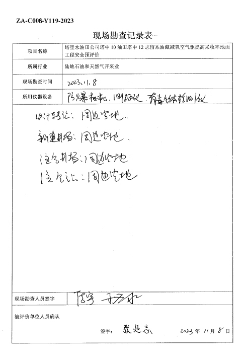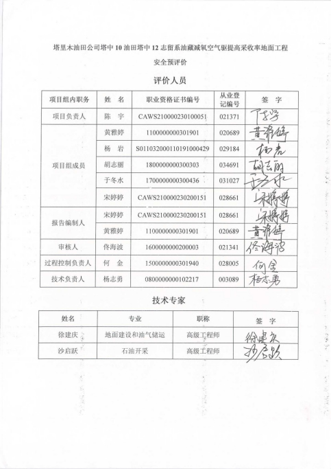 塔里木油田公司塔中10油田塔中12志留系油藏減氧空氣驅(qū)提高采收率地面工程 安全預(yù)評價