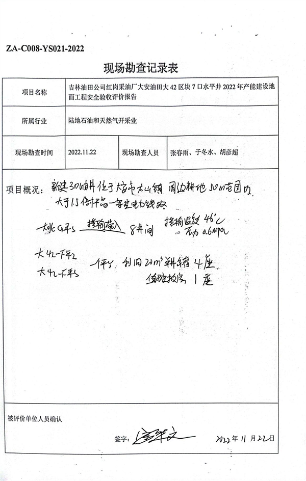 吉林油田公司紅崗采油廠大安油田大42區(qū)塊7口水平井2022年產(chǎn)能建設(shè)地面工程安全驗(yàn)收評價(jià)報(bào)告