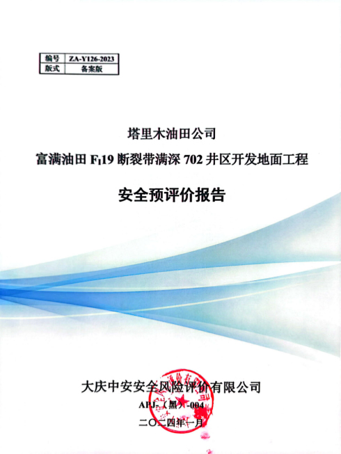 塔里木油田公司富滿油田FI19斷裂帶滿深702井區(qū)開發(fā)地面工程安全驗(yàn)收評(píng)價(jià)報(bào)告