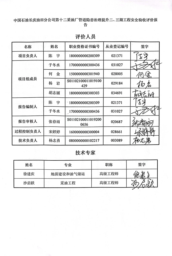 中國石油長慶油田分公司第十二采油廠管道隱患治理提升二、三期工程安全驗收評價報告 |